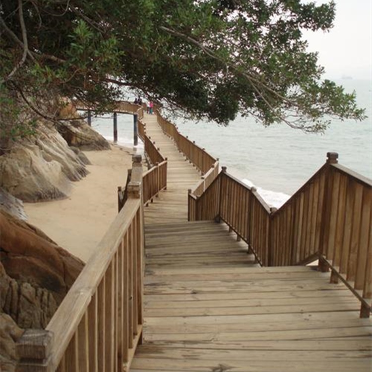 3、另外,在建設(shè)護(hù)欄時(shí),盡量使用長板,減少接頭以求美觀,在板面之間留出5-10mm的間隙,是為了可以使空氣更好的流通來保證其使用環(huán)境和使用壽命。護(hù)欄的所有連接點(diǎn)要使用鍍亞金屬固件,或者使用不銹鋼和金屬零件,注意要使用同一種金屬材質(zhì),以免產(chǎn)生電勢差導(dǎo)致金屬固件腐蝕。另外,防腐木護(hù)欄使用的膠粘劑為防水耐候型,防腐木表面必須用木油涂料進(jìn)行表面處理。